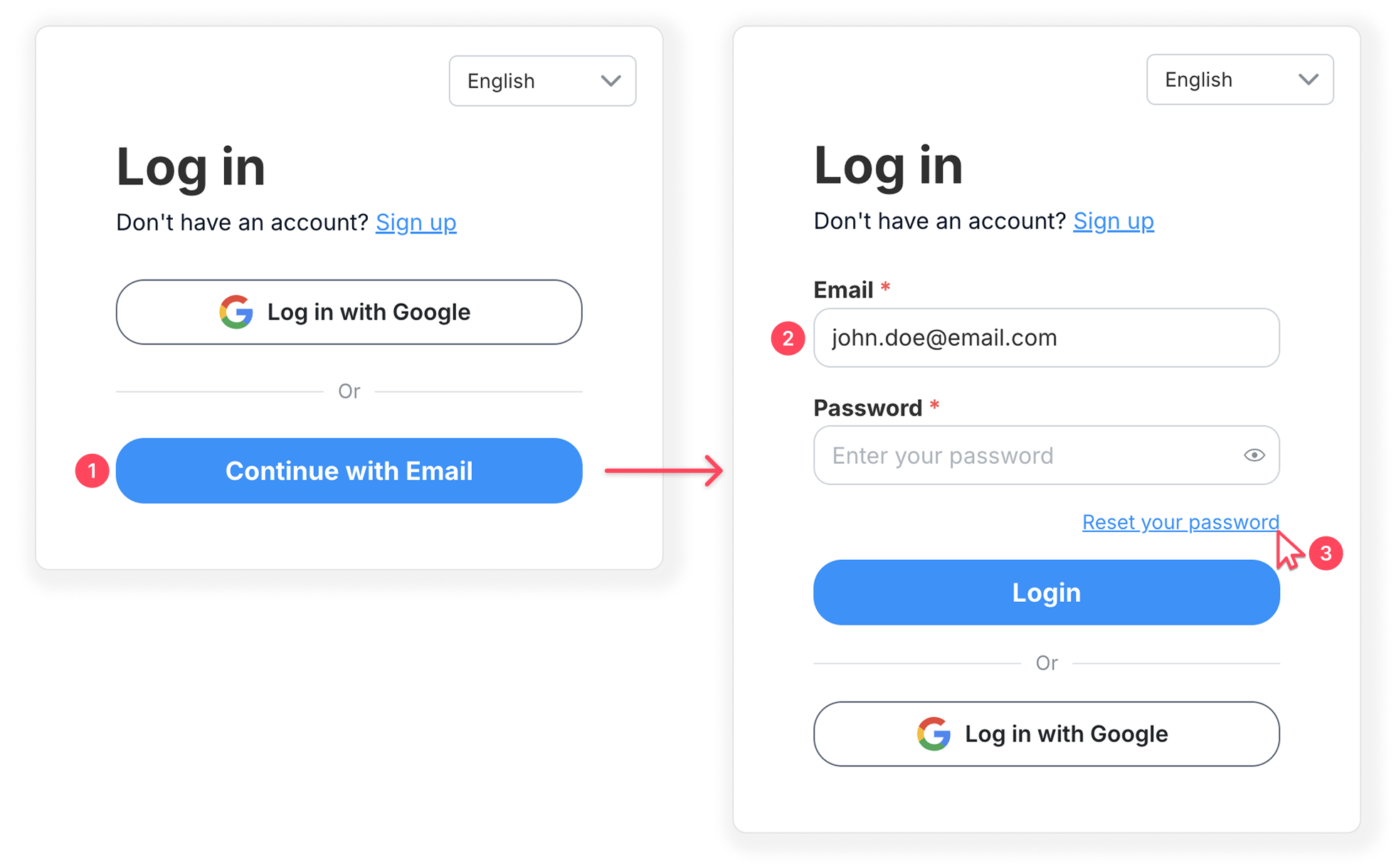 Go back to the login page, enter your email address and your new password, then click Log in. That’s it! You now have access to your account again.