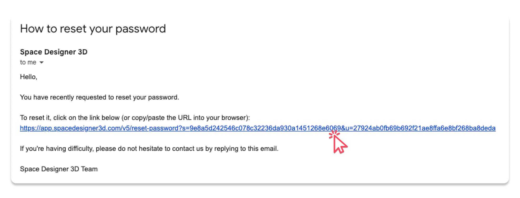 If you're still having trouble or didn’t receive the reset email, feel free to contact our team at: support@spacedesigner3d.com.