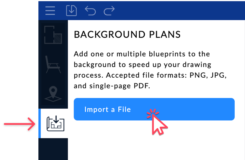 If your project has multiple levels, you can import a different plan for each level. It's also possible to add several background plans to the same level if needed.