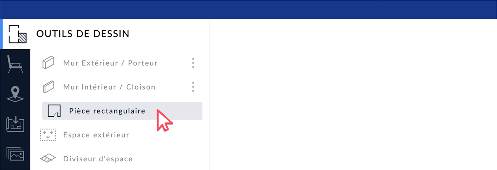 L'outil de dessin Pièce rectangulaire est accessible directement depuis le menu Outils de dessin.