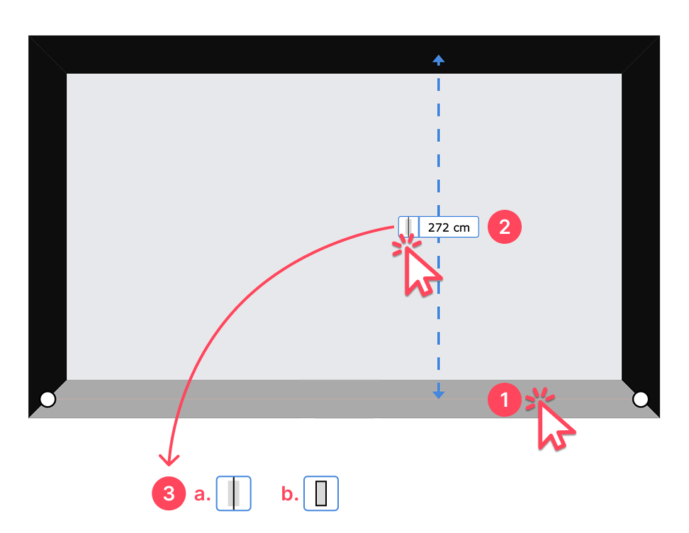 - Diviser à intervalles réguliers : Vous pouvez définir une distance spécifique en centimètres pour diviser le mur en sections égales. Par exemple, en entrant 100 cm, le mur sera divisé en segments de cette longueur.