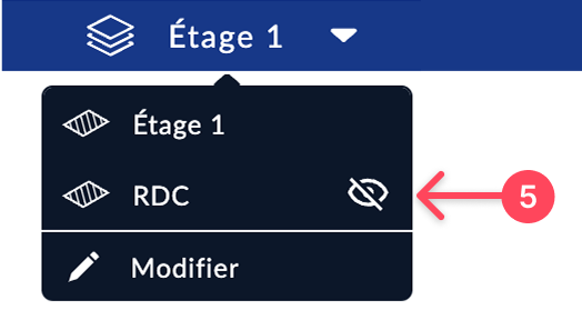 - Cliquez sur l’icône représentant des niveaux empilés, en haut à droite de l’écran. Un menu déroulant s’ouvre avec la liste des niveaux existants dans le projet.