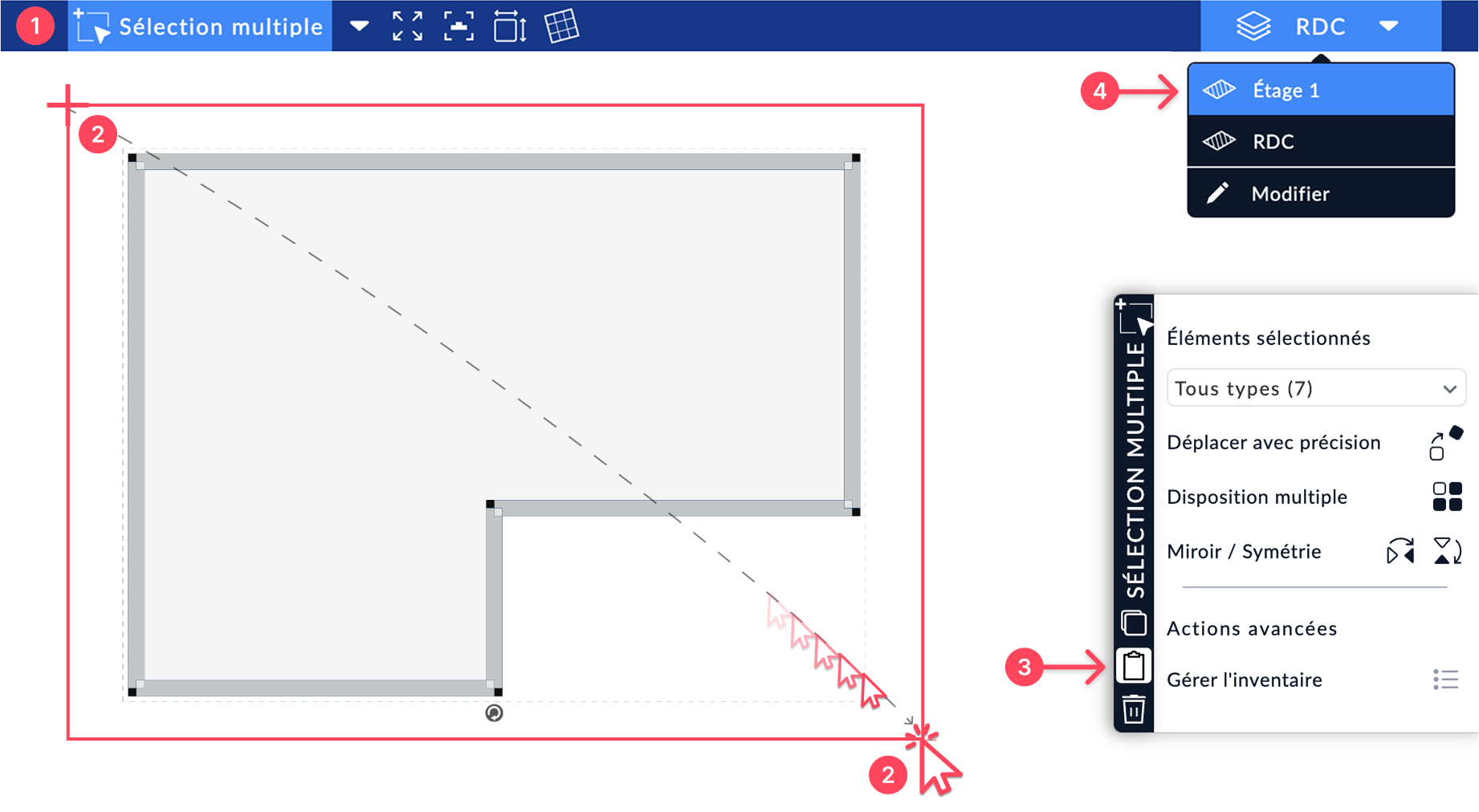 - Activez l'outil Sélection multiple depuis la barre d'outils.