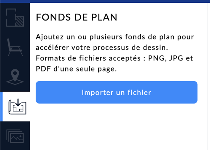 Cette option est disponible dans l'onglet Fonds de plan, où vous pouvez importer des fichiers PNG, JPG et PDF.