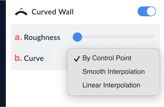 The Curved Wall option allows you to transform a straight wall into a curved one. Once enabled, two parameters can be adjusted: