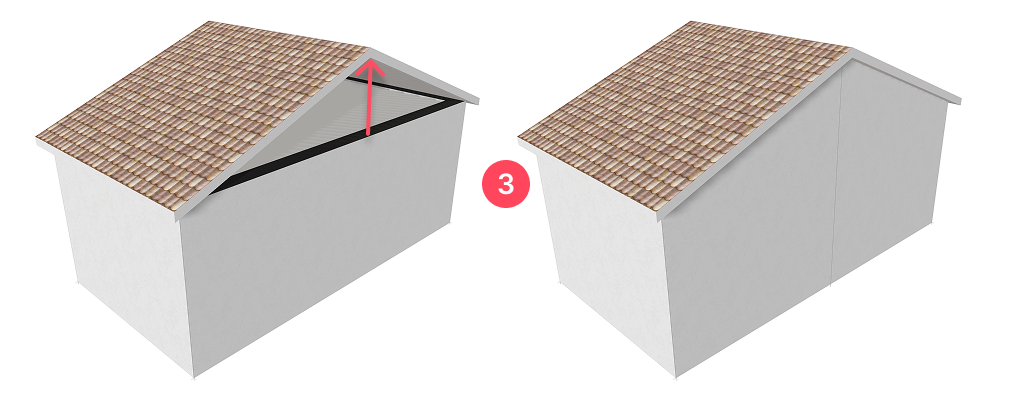 - Extend to Roof – Automatically adjusts the wall height to follow the roof slope. Ideal for creating a gable wall under a double-pitched roof.