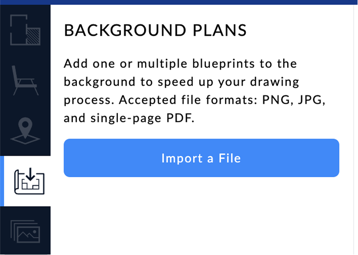 This option is available in the Background Plans tab, where you can import PNG, JPG and PDF files.