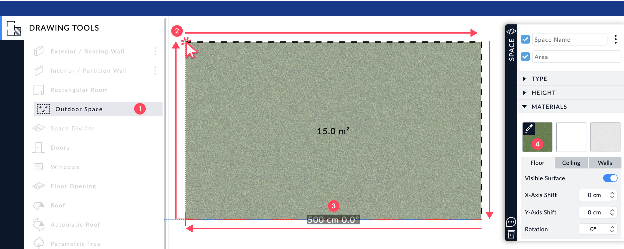 - In the Drawing Tools menu, click on Outdoor Space.